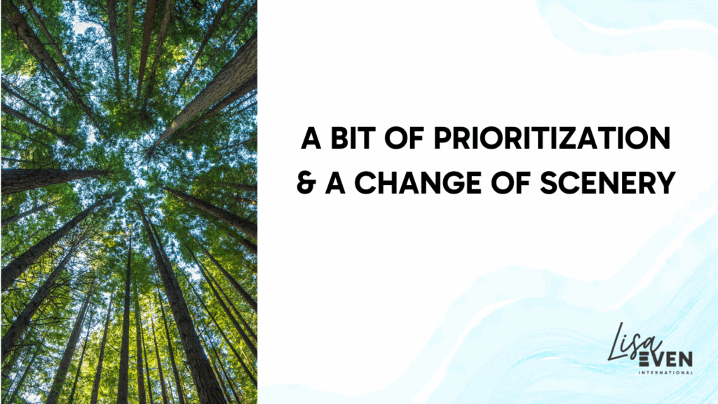 Because sometimes, what we need is a change of scenery. It doesn’t have to be a full-on vacation. Sometimes it’s as simple as a walk around the block, lunch eaten in a new spot, working in a different room, or dinner on the living room floor. It can be five minutes or an afternoon.